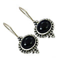 Silver Onyx Oval Dangle Earrings for Women | Black Gemstone Jewelry
