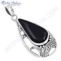 925 Silver Onyx Teardrop Pendant | Black Gemstone Necklace
