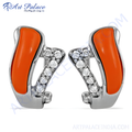 Silver Orange Enamel Earrings with Cubic Zirconia | Women's Jewelry