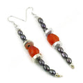 Silver Pearl & Carnelian Bead Earrings | Women's Dangle Jewelry