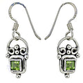 These elegant earrings feature genuine peridot gemstones set in 925 sterling silver. The earrings showcase a square-cut peridot, known for its vibrant green hue. Crafted with high-quality silver, these earrings are designed for durability and a comfortable fit. The design is simple, suitable for everyday wear, and incorporates a secure hook closure. These earrings are hypoallergenic, making them suitable for sensitive ears. The design makes them ideal for daily wear or gifting.