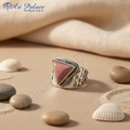 This exquisite ring features a vibrant pink opal gemstone set in a 925 sterling silver band. The statement ring showcases a triangular pink opal with a textured design. Crafted with high-quality 925 silver, it offers durability and a hypoallergenic design, perfect for sensitive skin. This ring is ideal for adding a touch of elegance to any outfit and is suitable for daily wear or gifting. Find the perfect statement piece in this ring, bringing a pop of color to any occasion. This ring is a must-have in your collection.