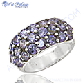925 sterling silver ring featuring multiple round-cut purple gemstones. Cocktail ring for women.