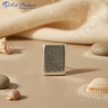 Silver rectangular stud earrings on a white background, showcasing the smooth, polished surface.