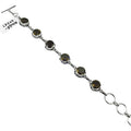 This elegant bracelet is crafted from 925 sterling silver, featuring genuine smoky quartz gemstones. The bracelet showcases a series of round, faceted smoky quartz stones, each securely bezel-set. The design ensures durability and a comfortable fit for daily wear. This bracelet is ideal for adding a touch of sophistication to any outfit, and is tarnish-resistant for lasting shine. The closure is a secure toggle clasp. This bracelet makes a perfect gift, suitable for any occasion.