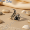 Silver Snake Ring with Black Stones for Women | Statement Jewelry