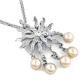 Silver sunburst pendant necklace with pearl drops, a beautiful and elegant piece.