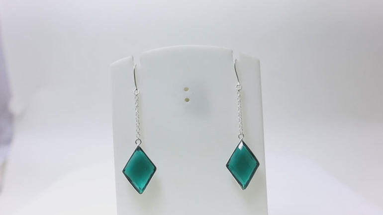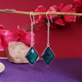Silver Teal Diamond Drop Earrings for Women | Gemstone Jewelry