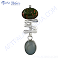 925 Silver Unakite & Grey Agate Pendant Necklace for Women
