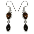 925 Silver Smoky Quartz & Onyx Drop Earrings for Women