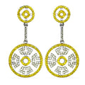 These exquisite dangle earrings feature vibrant yellow sapphires set in a silver frame. Crafted with a premium silver alloy, these earrings are designed for durability and a lasting shine. The intricate design and the sparkling stones create a captivating look, perfect for adding a touch of elegance to any outfit. The earrings are hypoallergenic and ideal for sensitive skin. They are a statement piece that's suitable for special occasions or adding a touch of glamour to your daily wear or gifting.